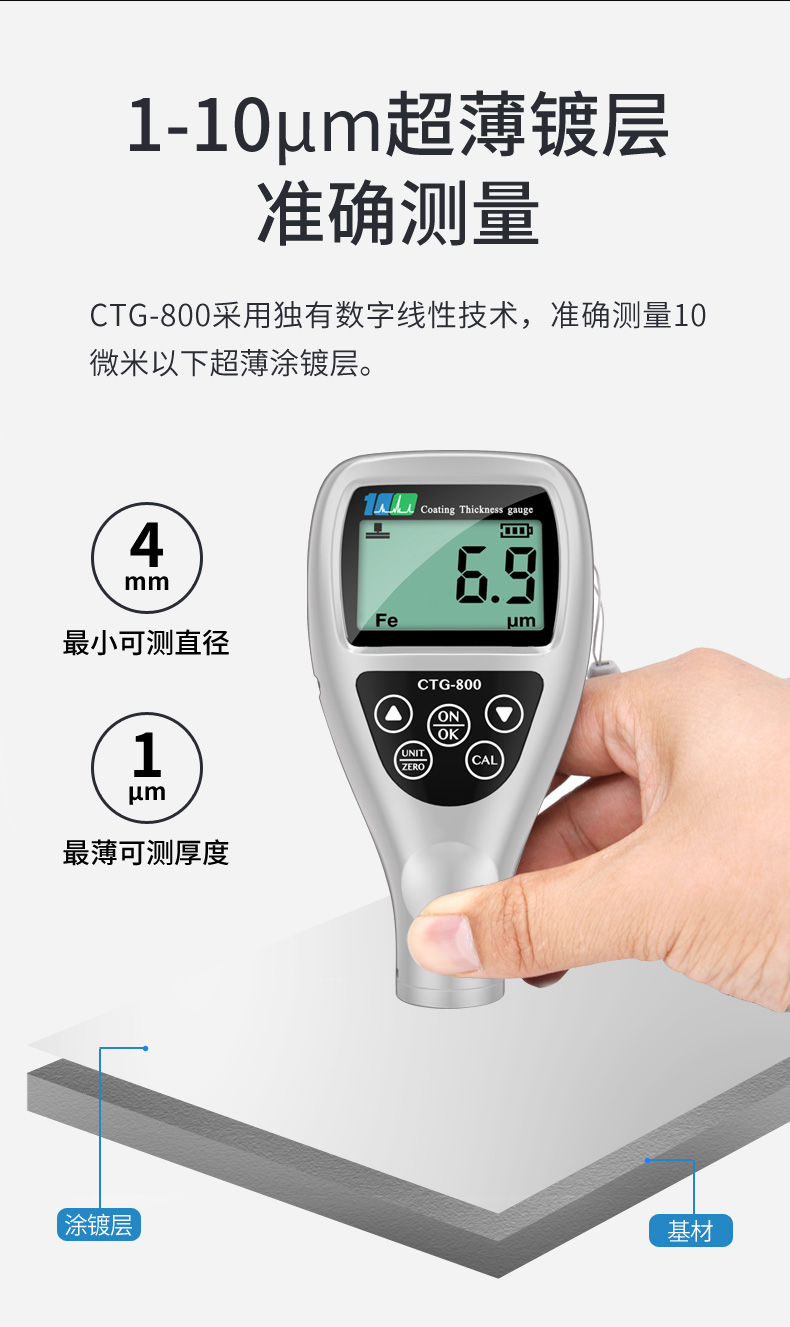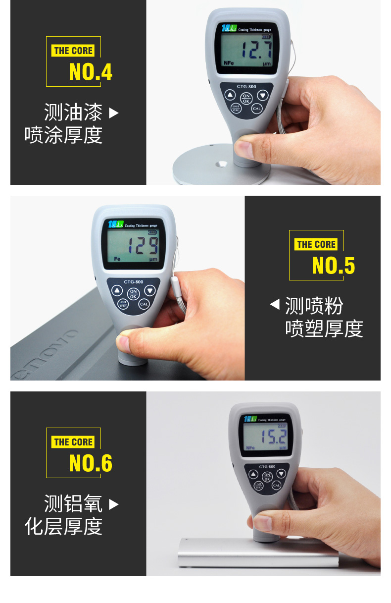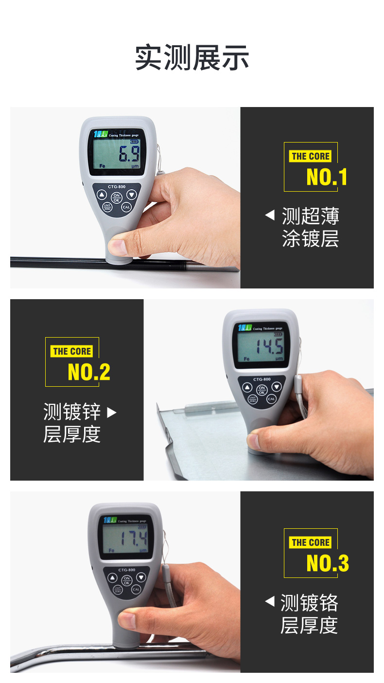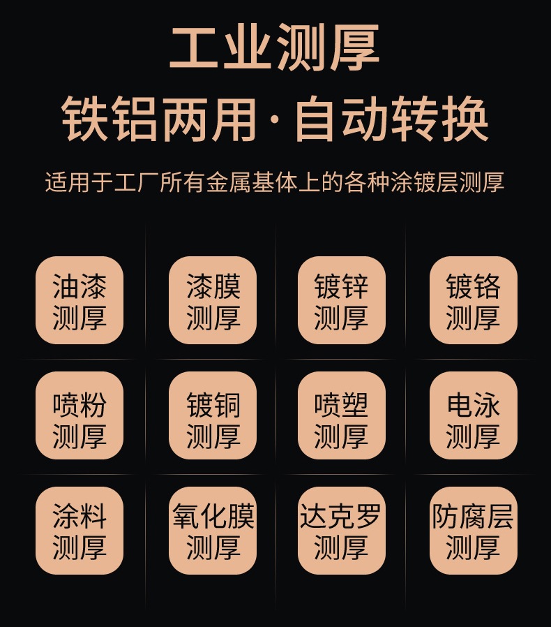 測量鐵或鋼上油漆、漆膜、鍍鋅、鍍鉻、鍍銅等;