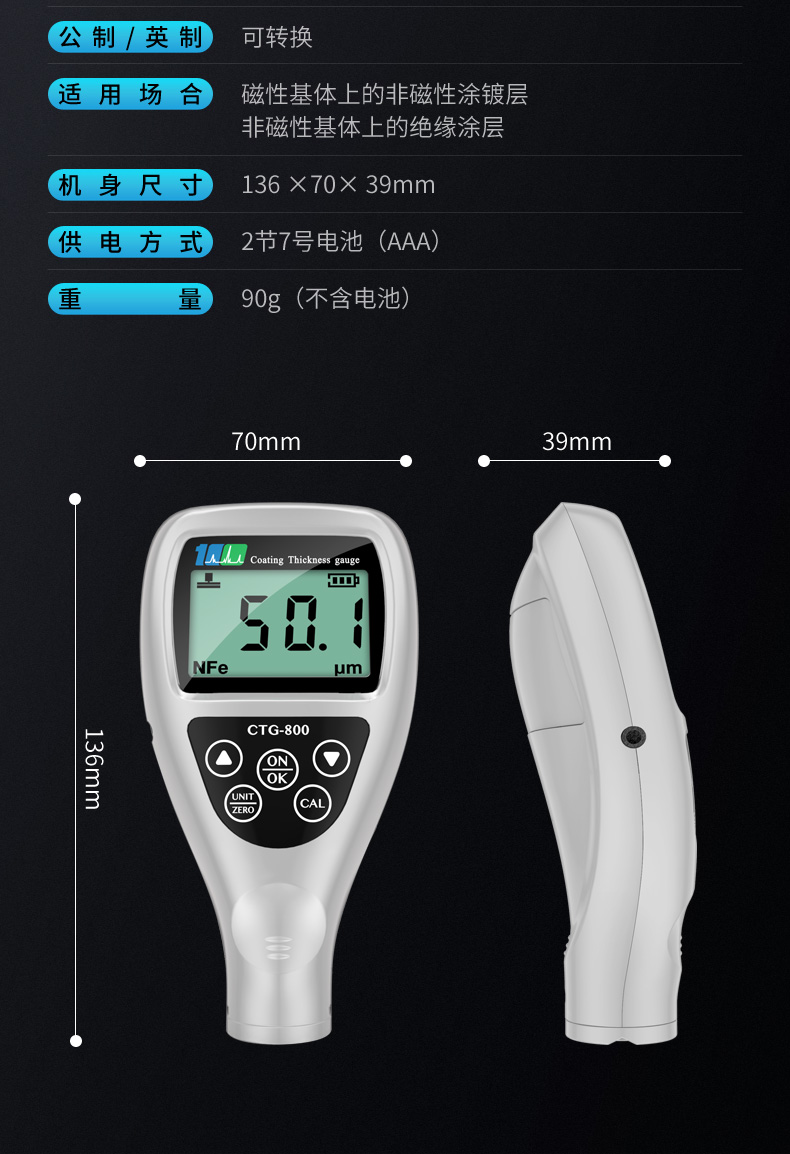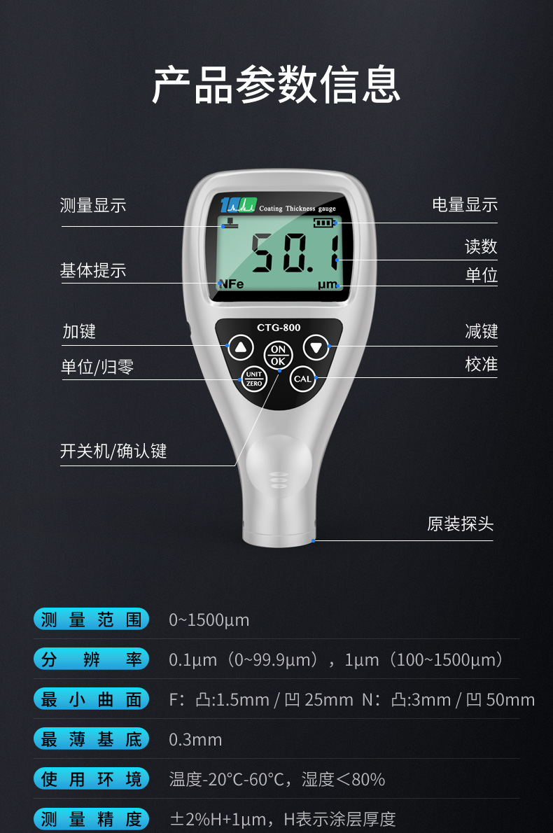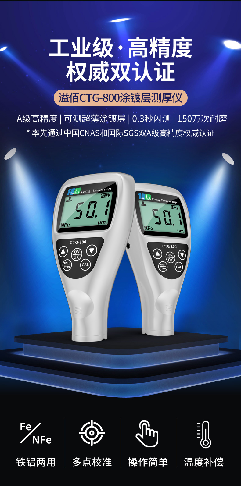 測量鐵或鋼上油漆、漆膜、鍍鋅、鍍鉻、鍍銅等;