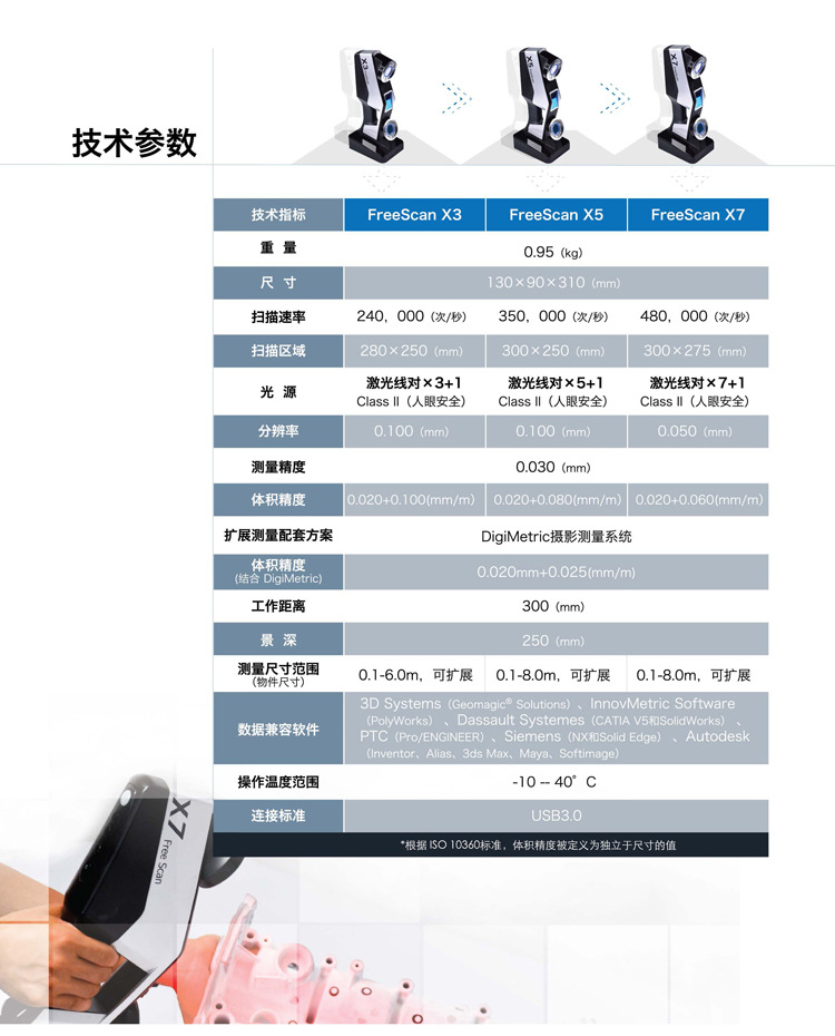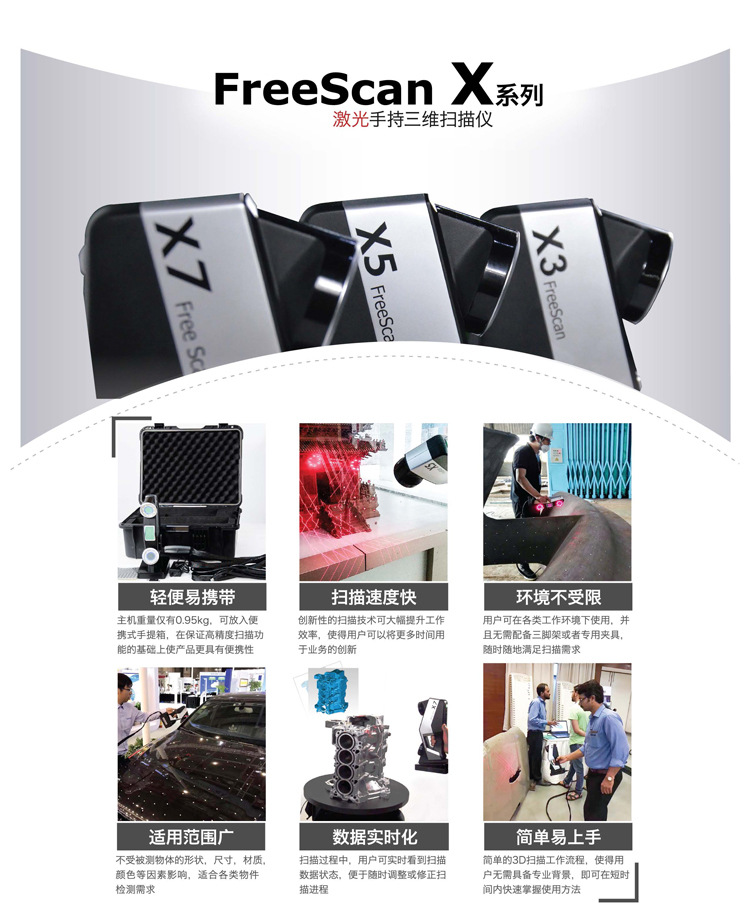 FreeScan X7激光手持三維掃描儀在技術(shù)上采用了國際頂級的多線結(jié)構(gòu)光激光器以及先進的雙7線掃描技術(shù),ClassⅡ(人眼安全),高速掃描可達480,000次/秒,精度高達0.03mm,可滿足多種掃描需求,不受物體大小、材質(zhì)、顏色等影響。