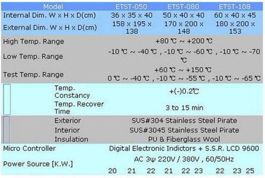 此設(shè)備區(qū)分為高溫區(qū),低溫區(qū),測試區(qū)三部份,采獨(dú)特之?dāng)酂峤Y(jié)構(gòu)及蓄熱、蓄冷效果,應(yīng)用冷熱風(fēng)路切換方式導(dǎo)入試品中,做冷熱沖擊測試,